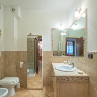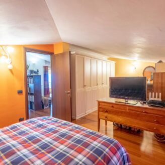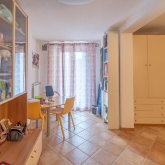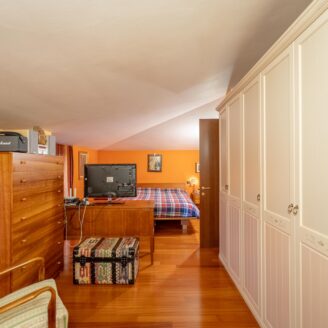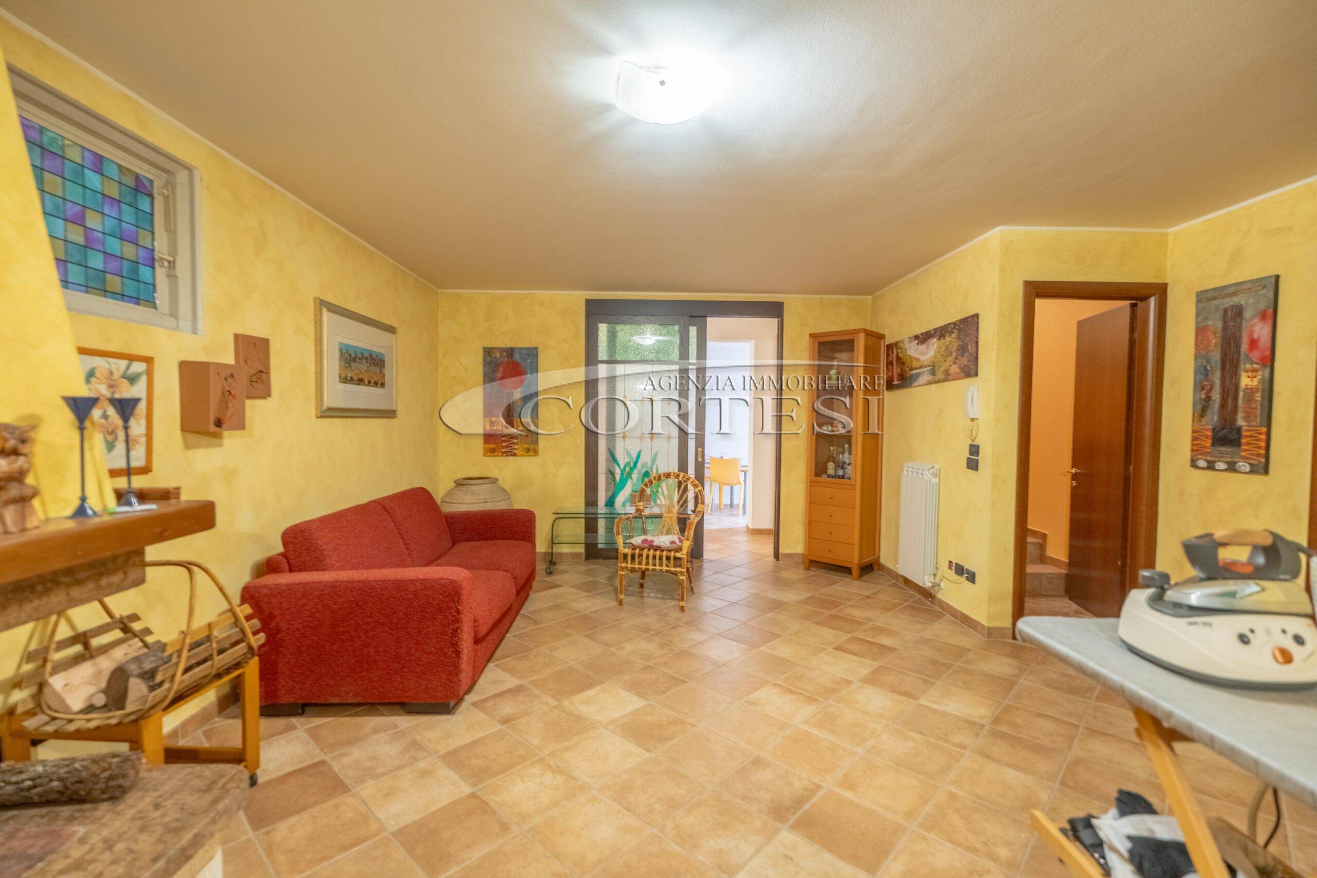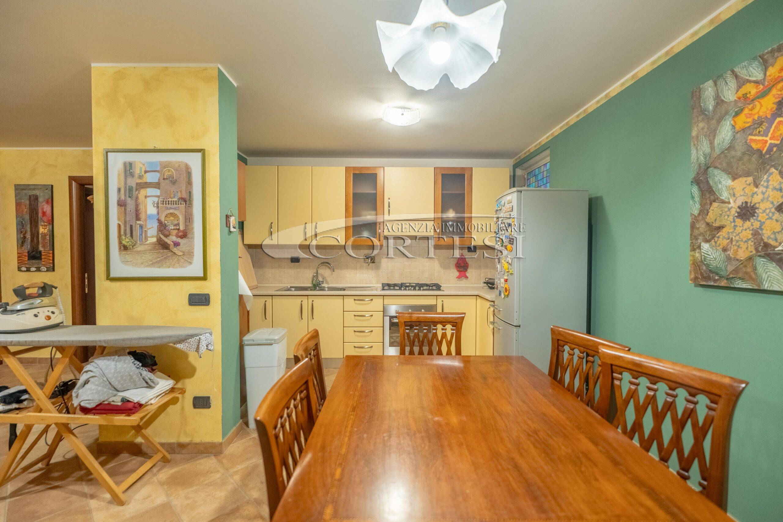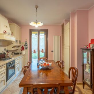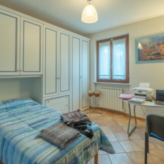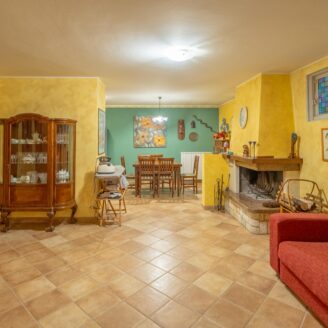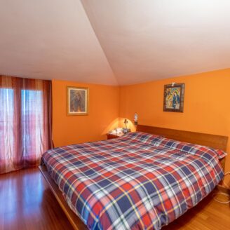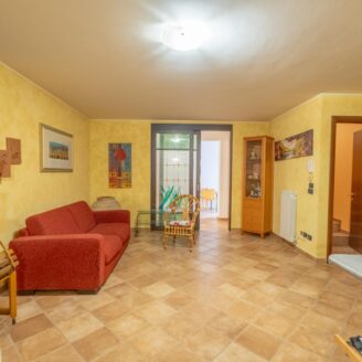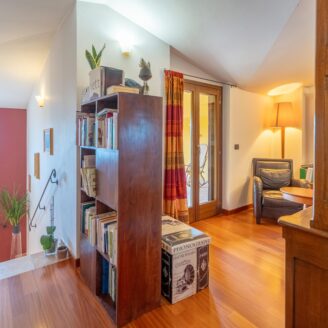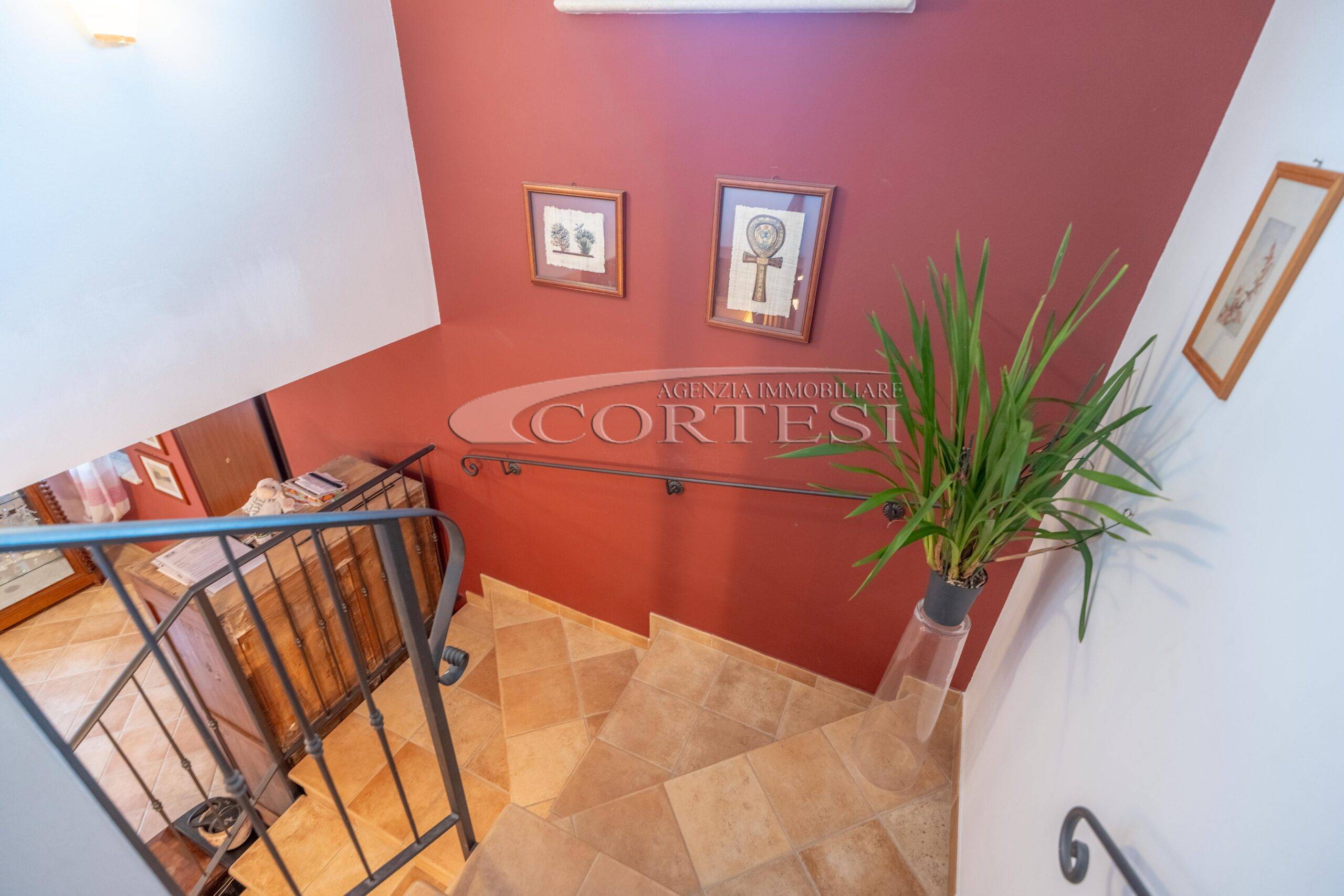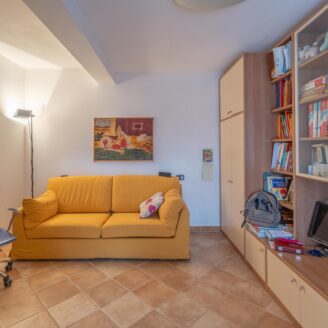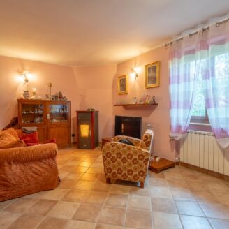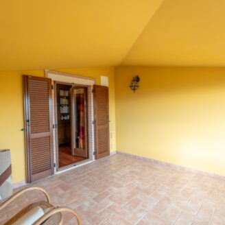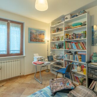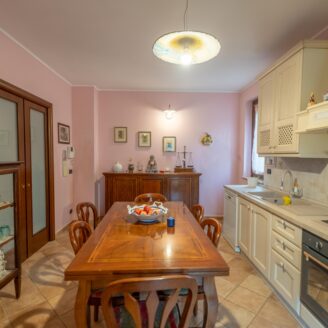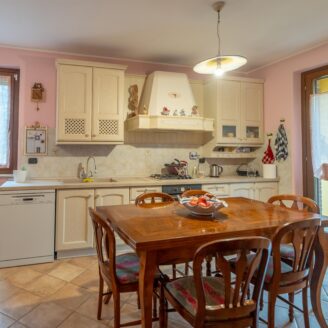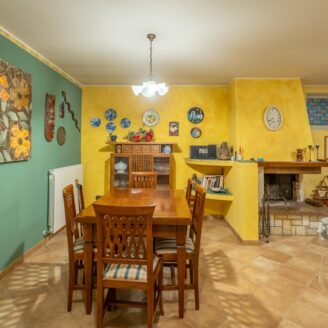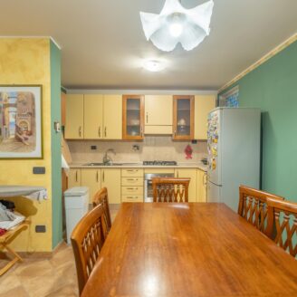 L’abitazione si sviluppa su più livelli. Al piano terra si trovano il soggiorno con stufa, separato dalla cucina da una porta a vetri. Quest’ultima ha accesso diretto al lastrico esterno, ideale per pranzi all’aperto, oltre ad un bagno.