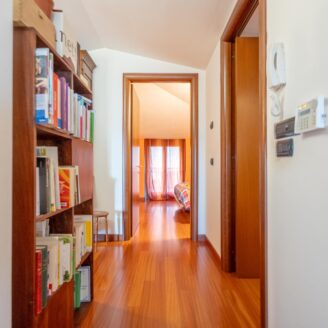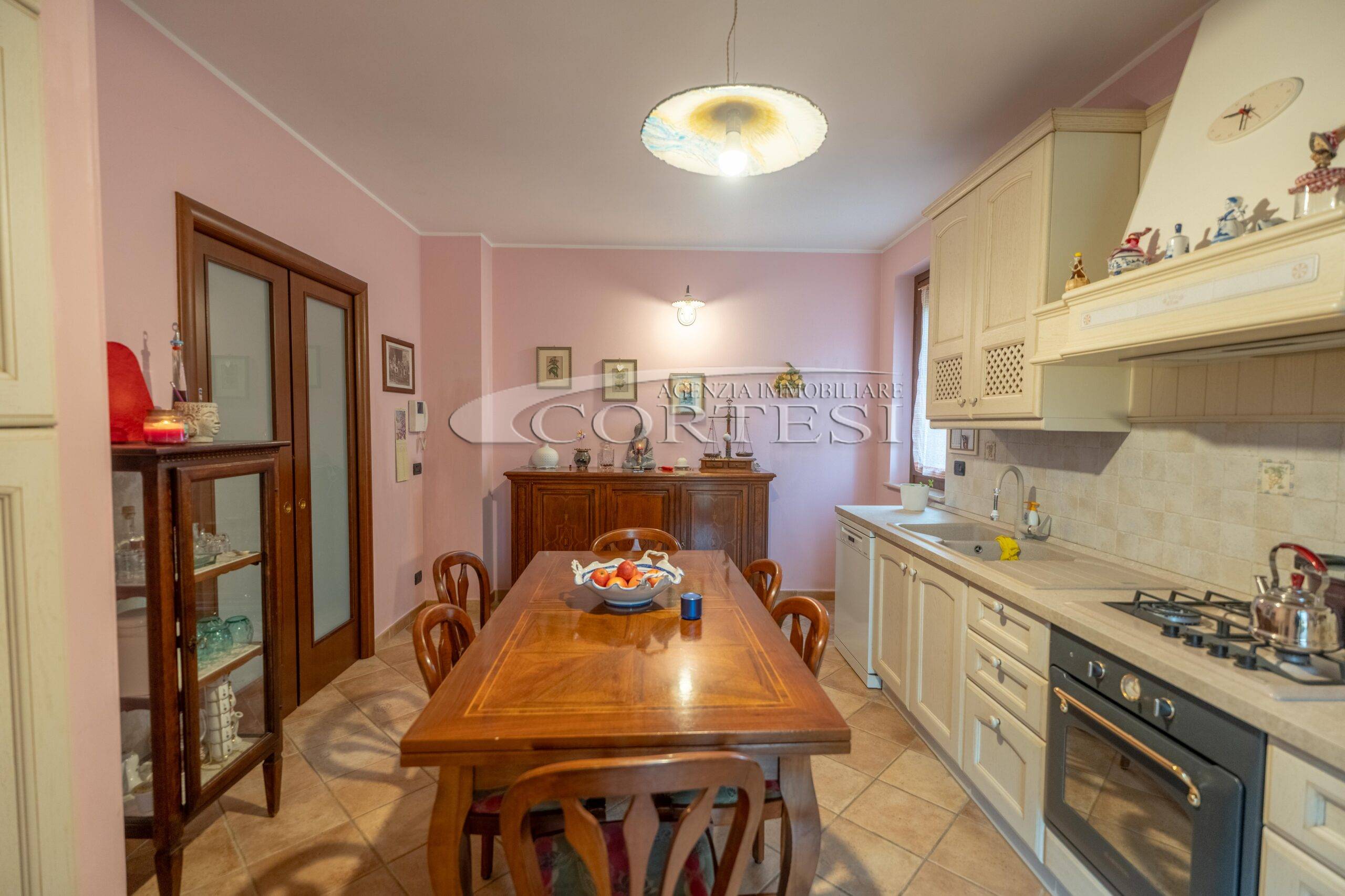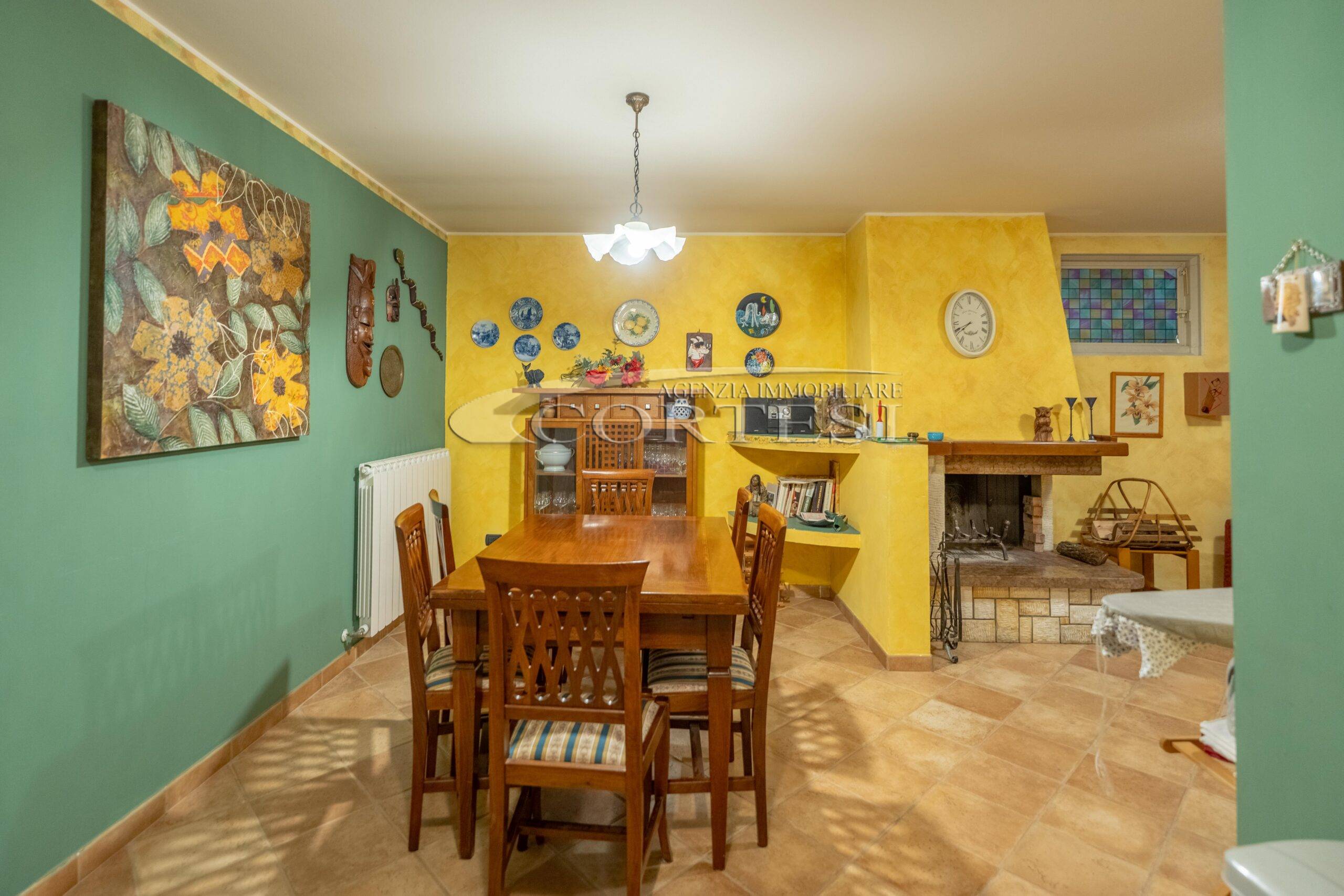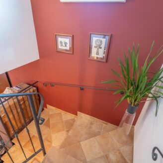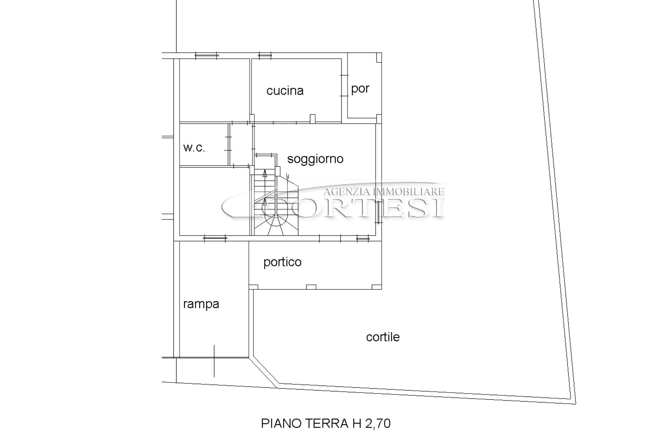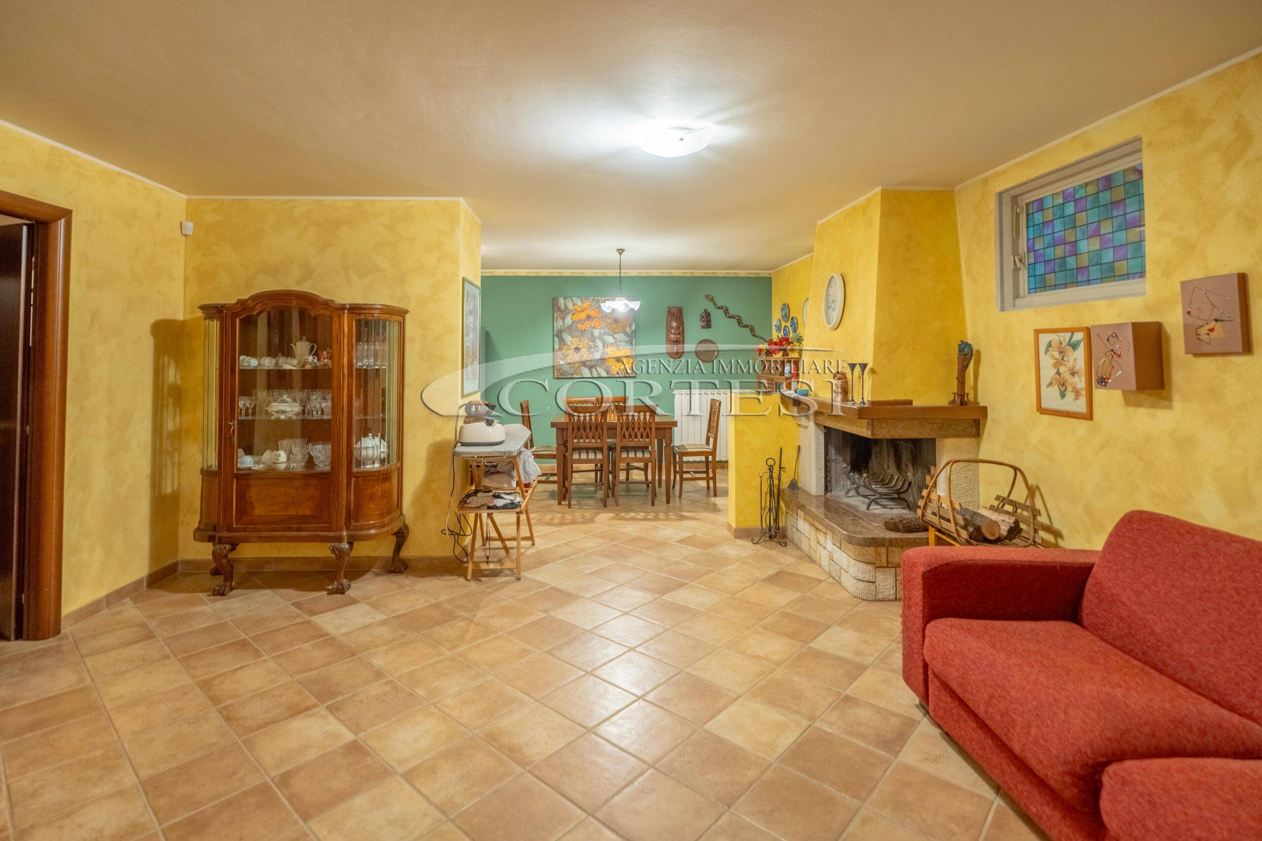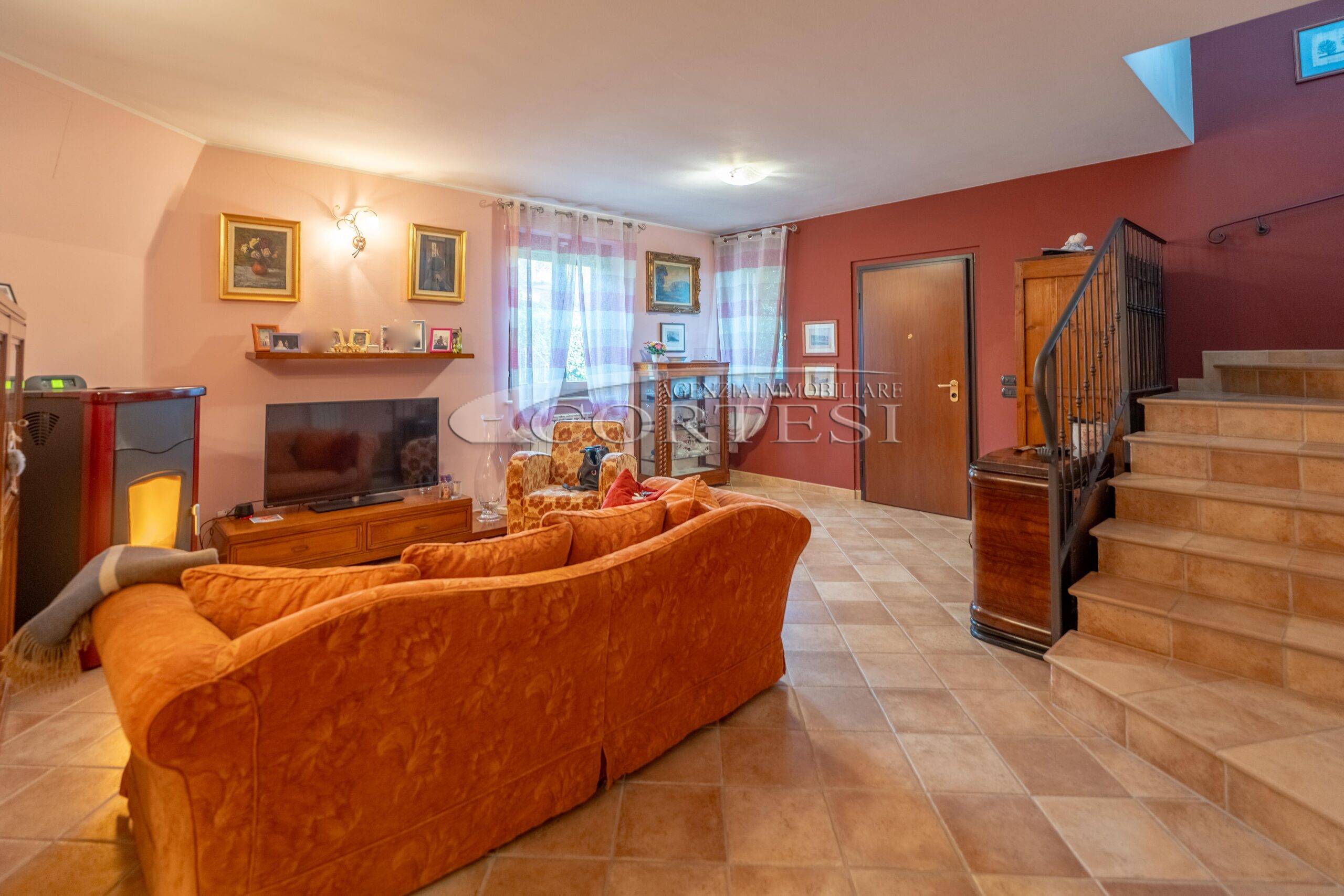 L’abitazione si sviluppa su più livelli. Al piano terra si trovano il soggiorno con stufa, separato dalla cucina da una porta a vetri. Quest’ultima ha accesso diretto al lastrico esterno, ideale per pranzi all’aperto, oltre ad un bagno.