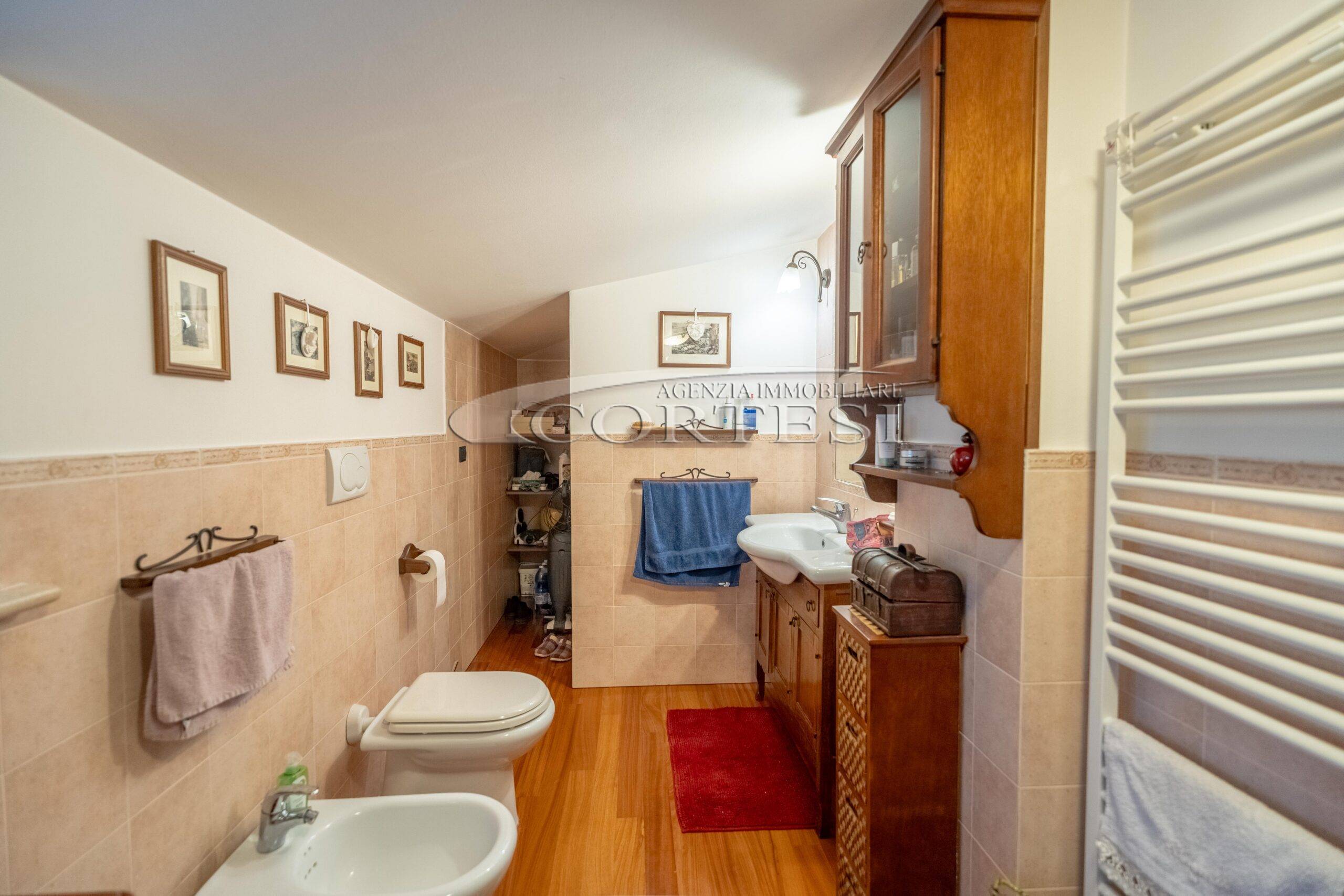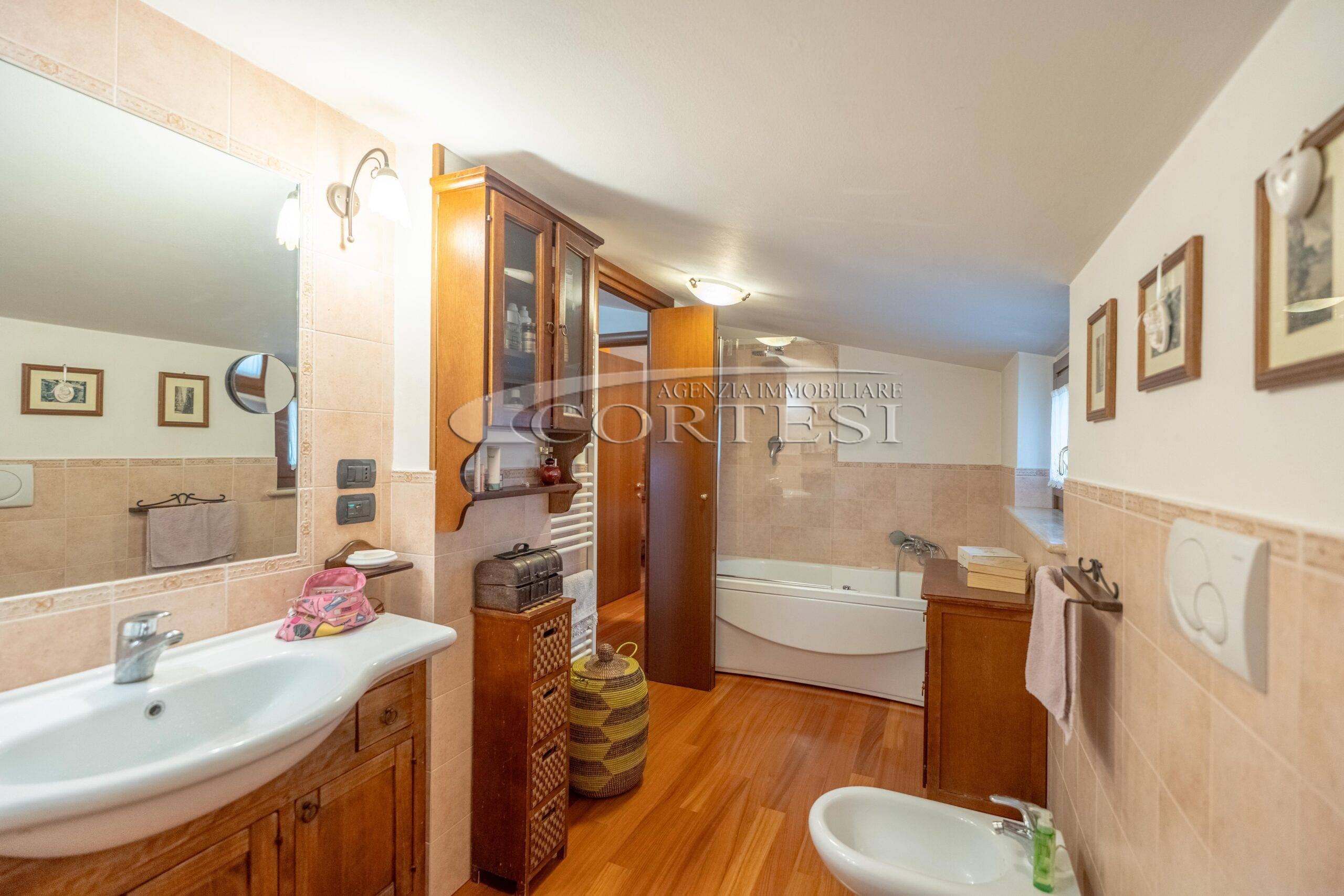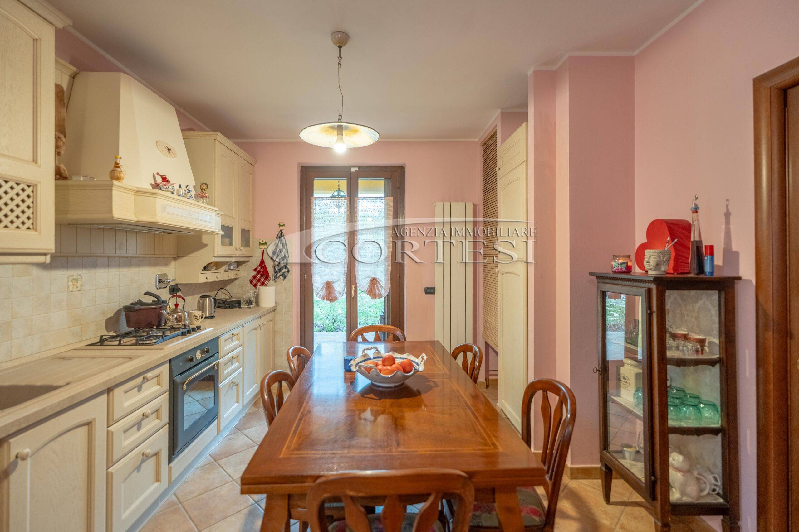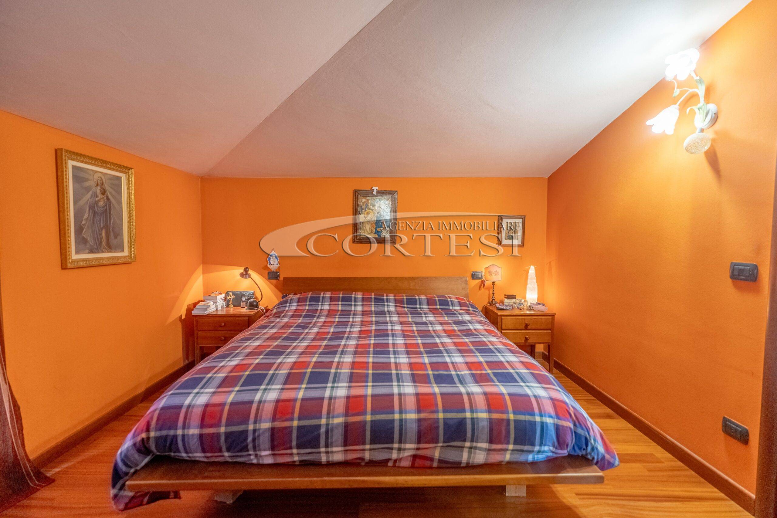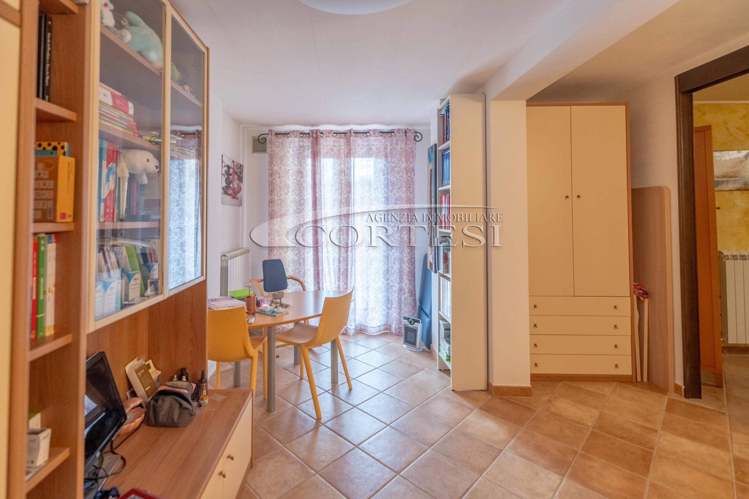 L’abitazione si sviluppa su più livelli. Al piano terra si trovano il soggiorno con stufa, separato dalla cucina da una porta a vetri. Quest’ultima ha accesso diretto al lastrico esterno, ideale per pranzi all’aperto, oltre ad un bagno.