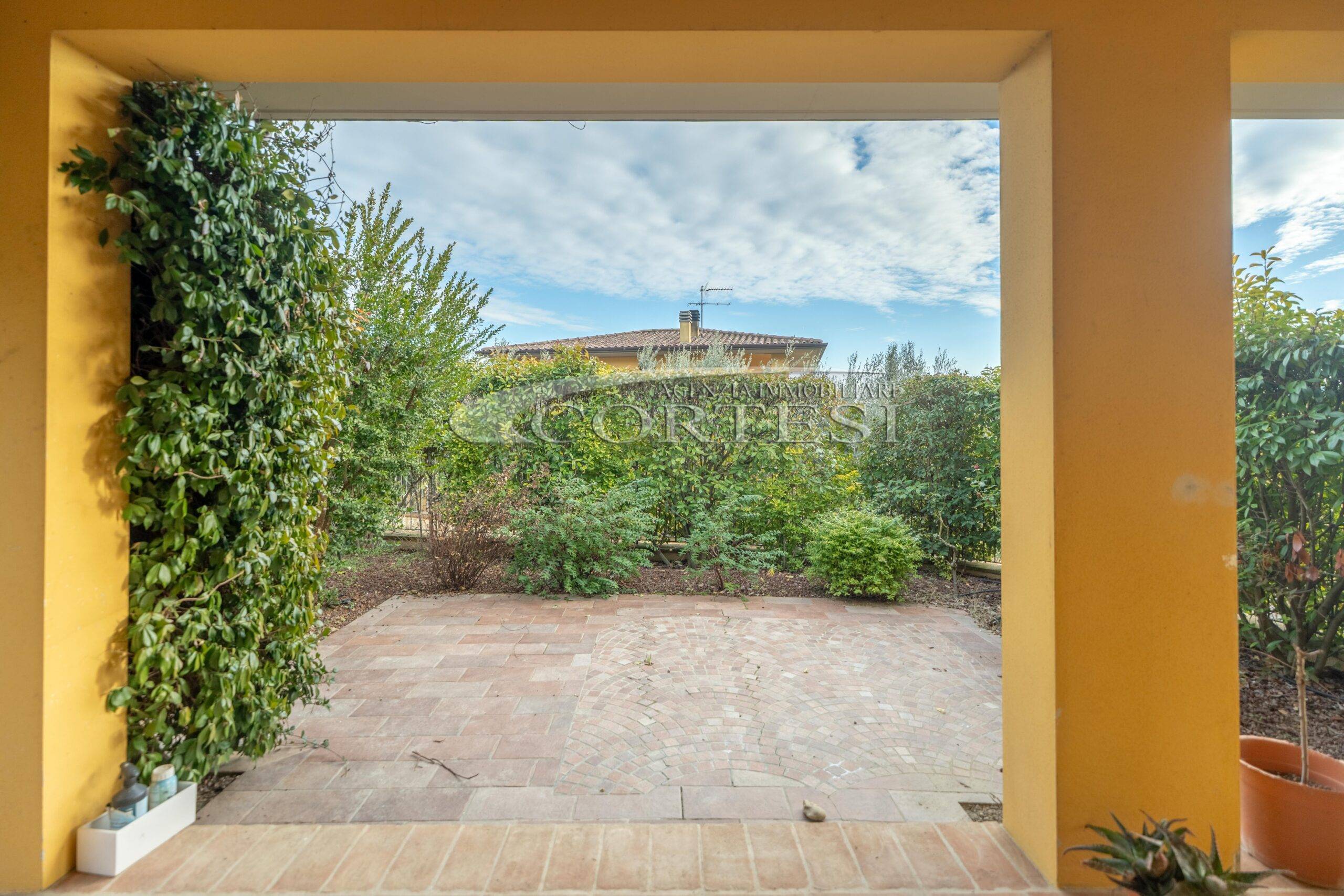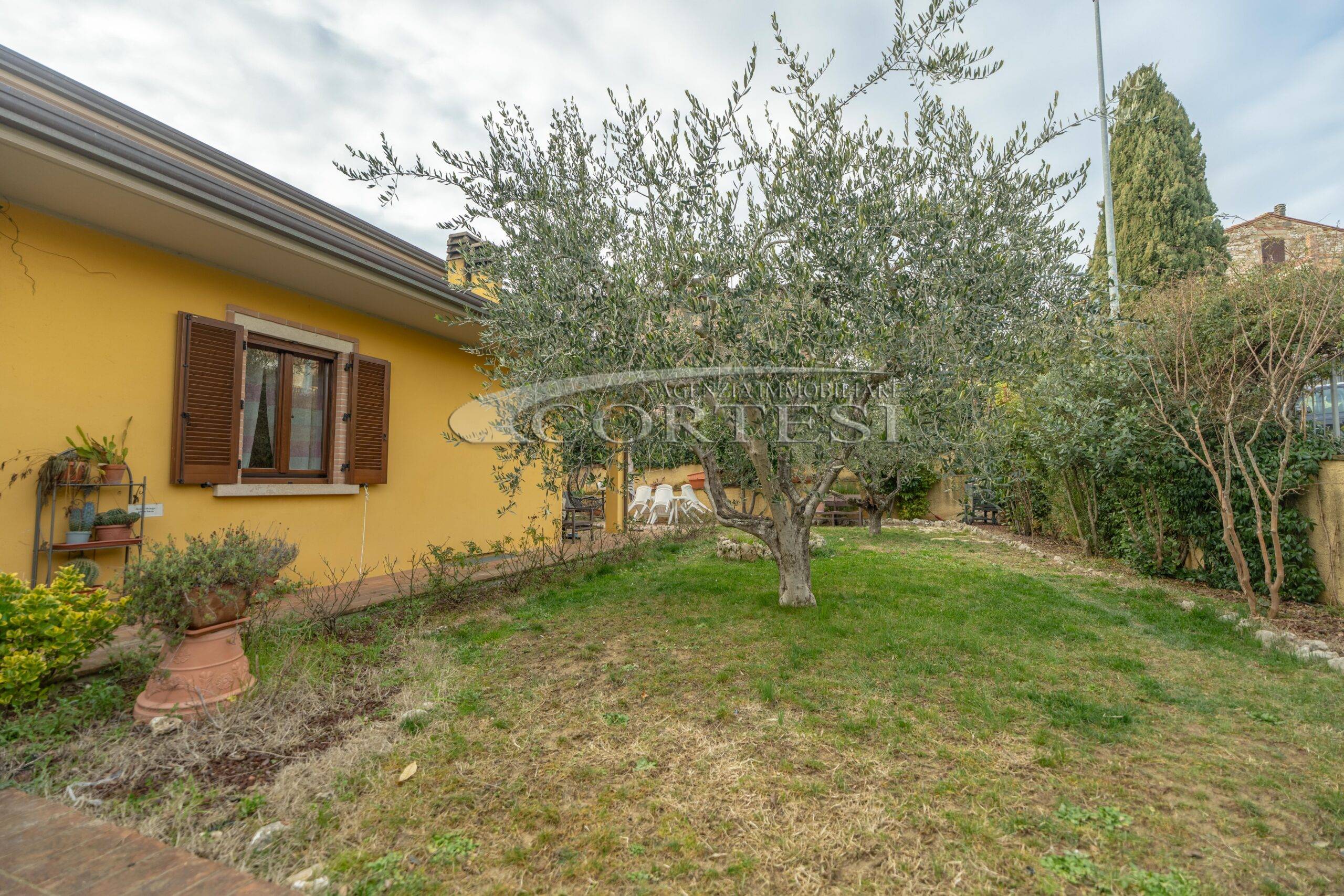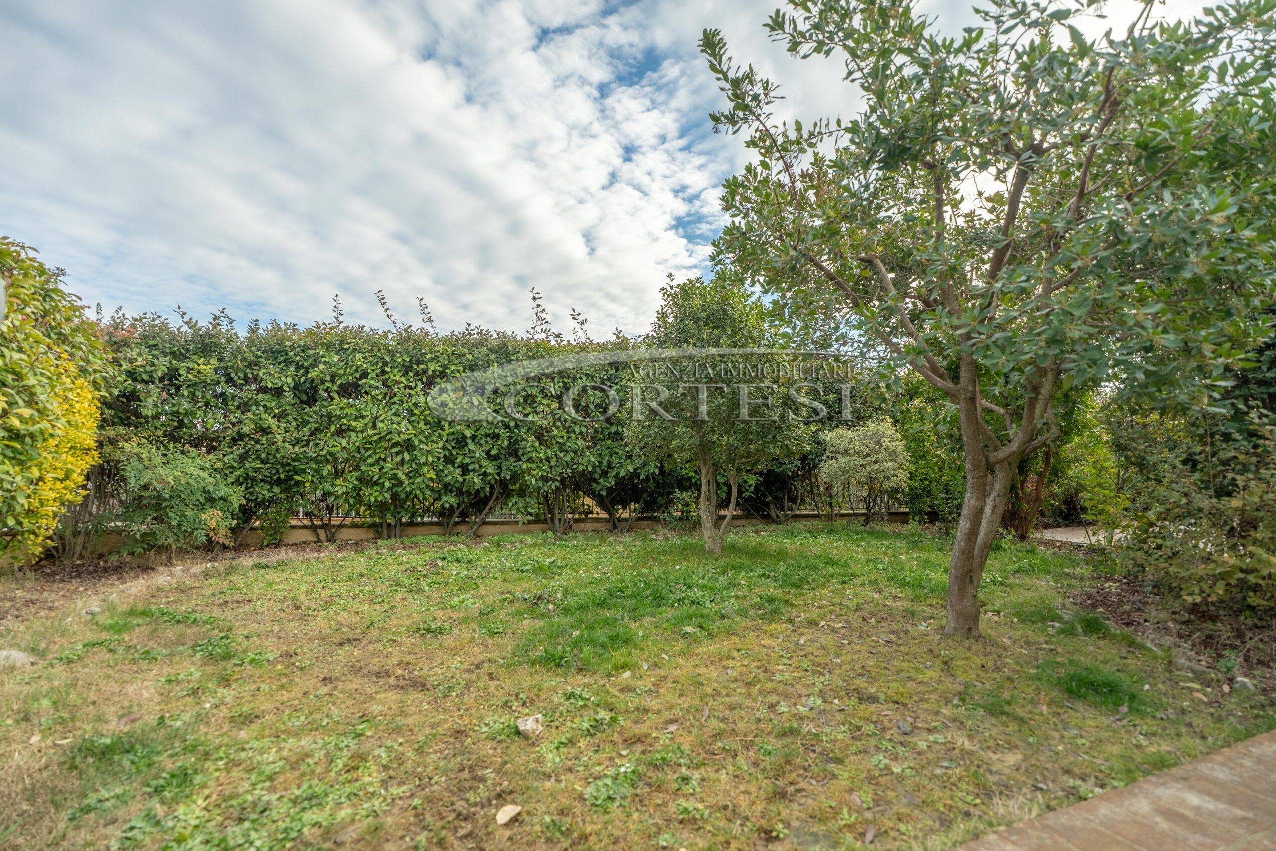 Un ampio giardino, pianeggiante e ben curato, circonda la casa su tre lati ed è completamente recintato con ringhiere in ferro.