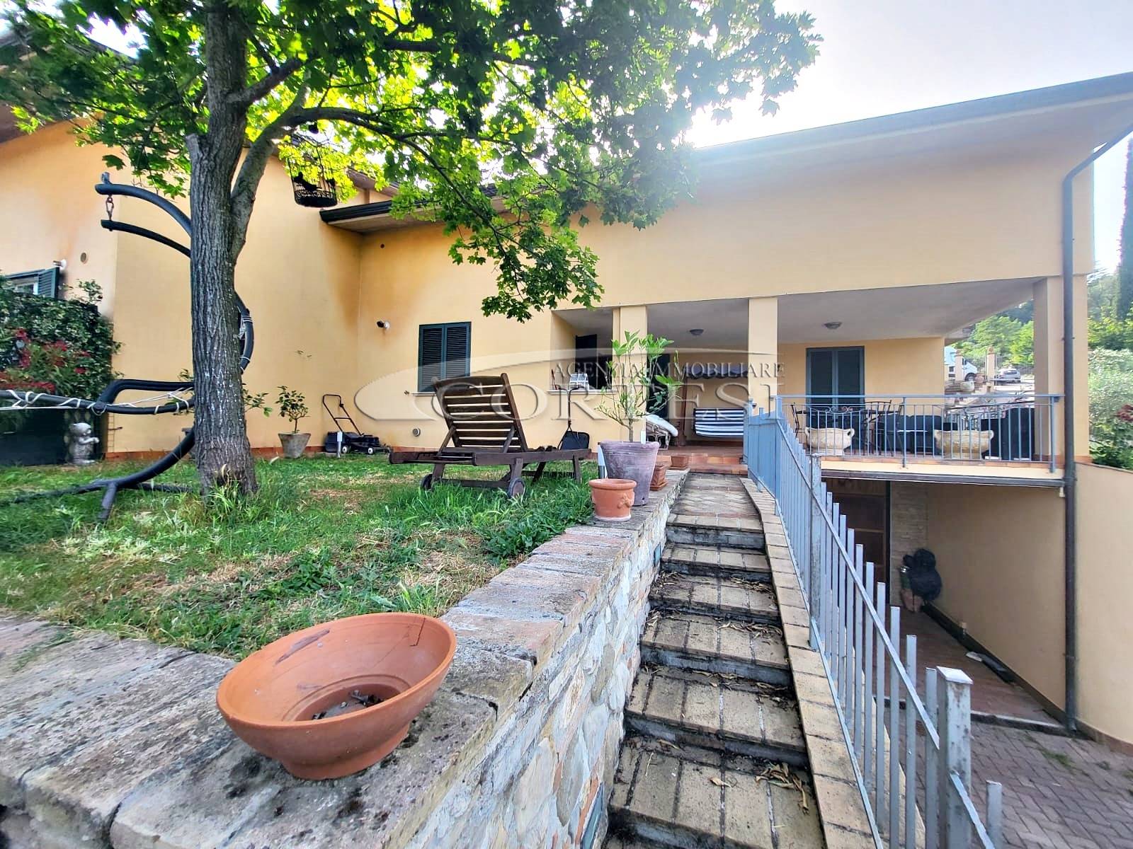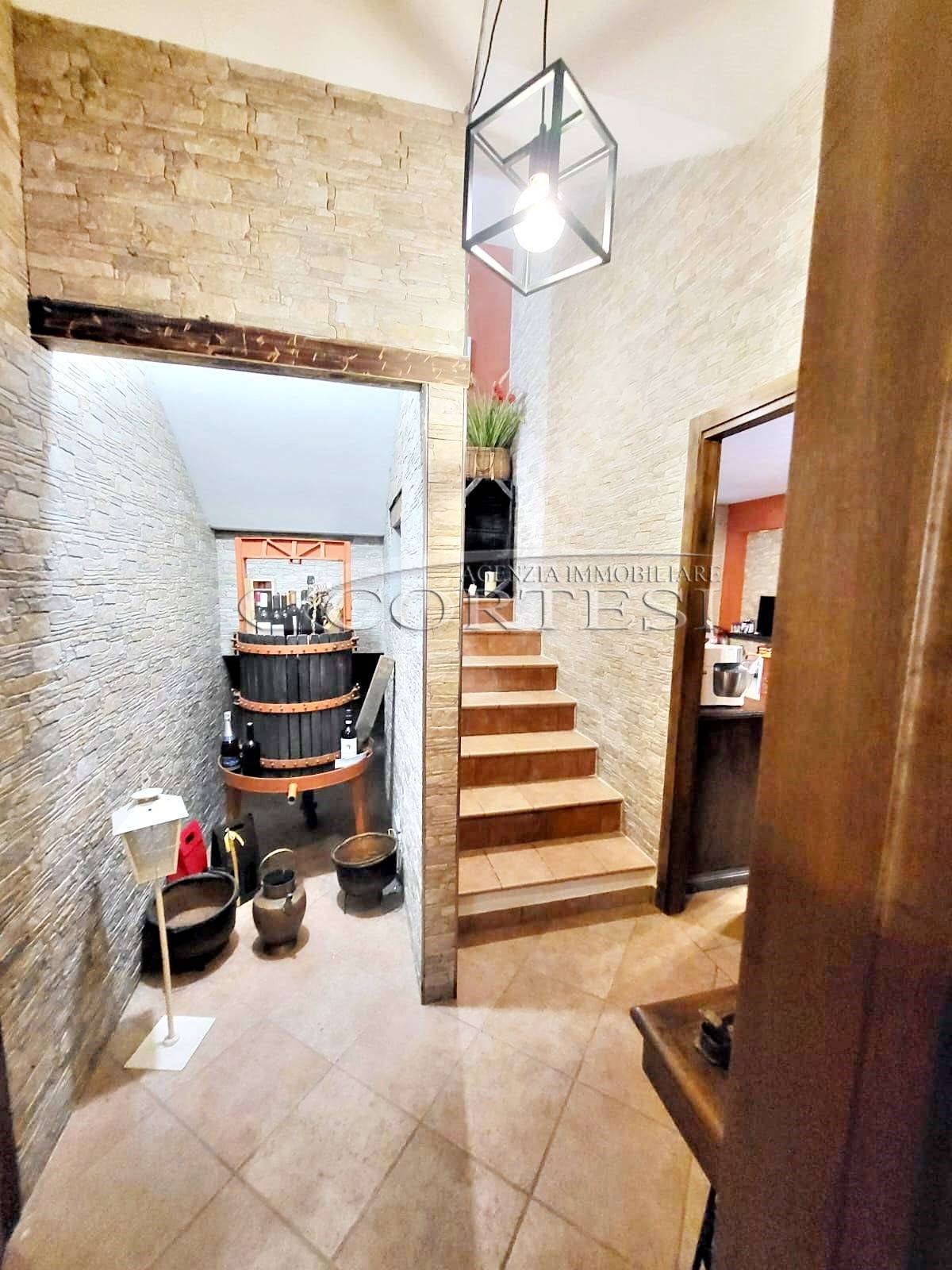 La proprietà è composta da ingresso, ampio soggiorno con accesso diretto a portico e giardino privato, angolo cottura, camera matrimoniale, studio e bagno a Piano Terra; tre ampie camere matrimoniali di cui una con cabina armadio ed accesso a balcone ed a terrazzo a tasca oltre a bagno a Piano Primo; ampia taverna con camino, angolo cottura, bagno ed ampio garage con quattro posti auto a Piano Seminterrato.