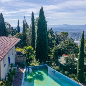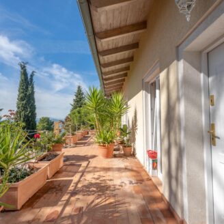 Al Piano Terra troviamo un’ampia e luminosa zona living open space con angolo cottura ed accesso diretto ad un elegante Portico che affaccia sulla Piscina a sfioro, predisposto per la chiusura con pannelli in vetro, così da poterlo rendere uno spazio vivibile tutto l’anno, con vista panoramica sulla valle. La zona notte è composta da quattro camere da letto, ognuna con bagno privato, ideale per accogliere ospiti o per una grande famiglia.