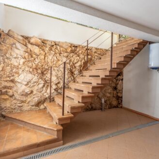 Al Piano Seminterrato si accede ad un appartamento indipendente composto da zona giorno con angolo cottura, camera matrimoniale e bagno. A completare il livello troviamo una Taverna unica nel suo genere, con una suggestiva porzione di roccia a vista, oltre a bagno di servizio, lavanderia e vano tecnico a servizio della piscina.