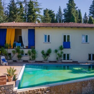 L’abitazione si sviluppa su due livelli per una superficie totale di circa 425 mq, ed è circondata da un curato Giardino di circa 1500 mq con piscina.