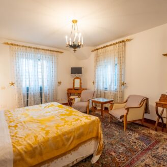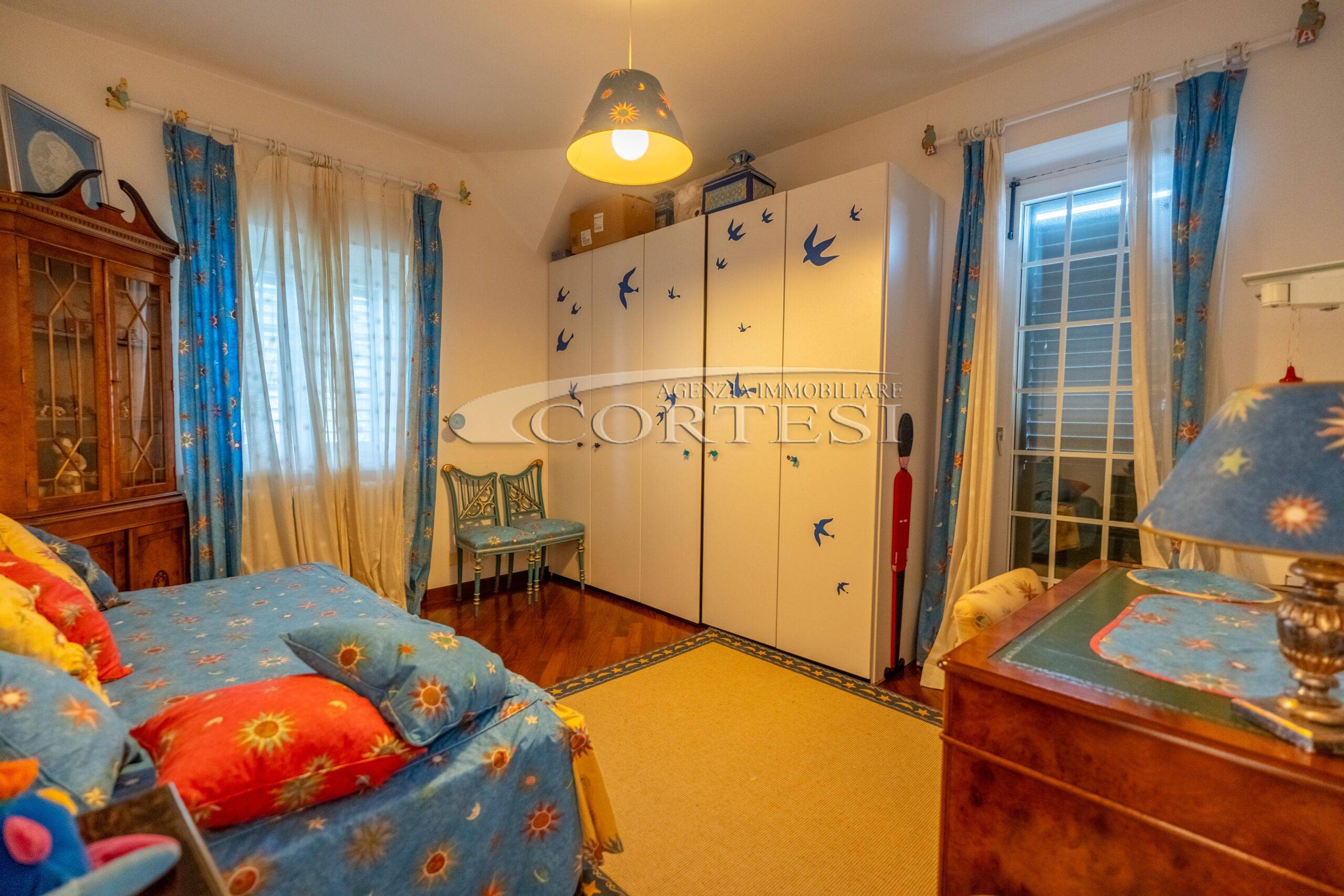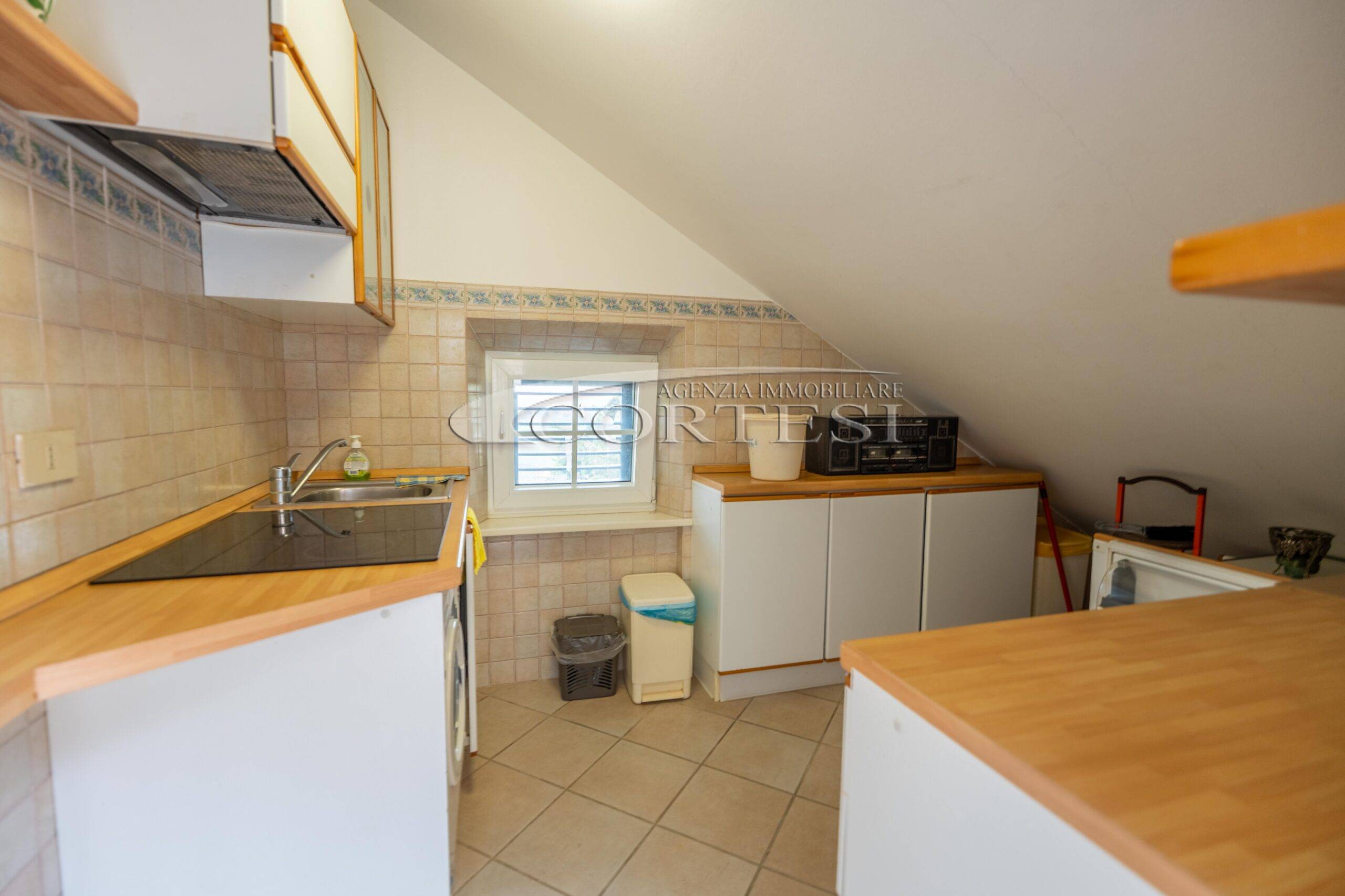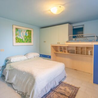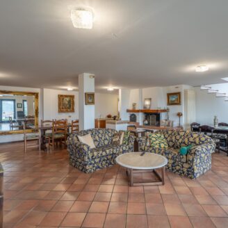A piano secondo si sviluppa la zona notte composta da suite con bagno privato e terrazza privata con cucinotto, doppia camera singola e un ulteriore bagno.
