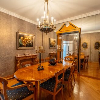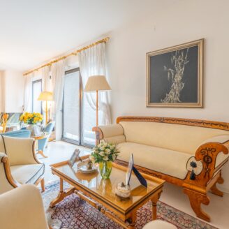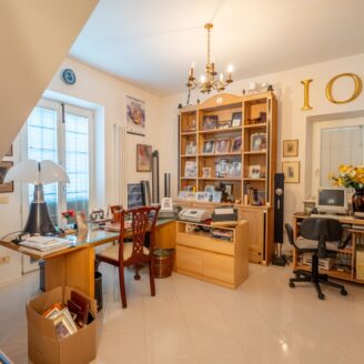 piano primo è composto da ampio ingresso, studio , luminoso ed elegante living, sala da pranzo con piano bar, e bagno signorile, e terrazza abitabile con vista panoramica.