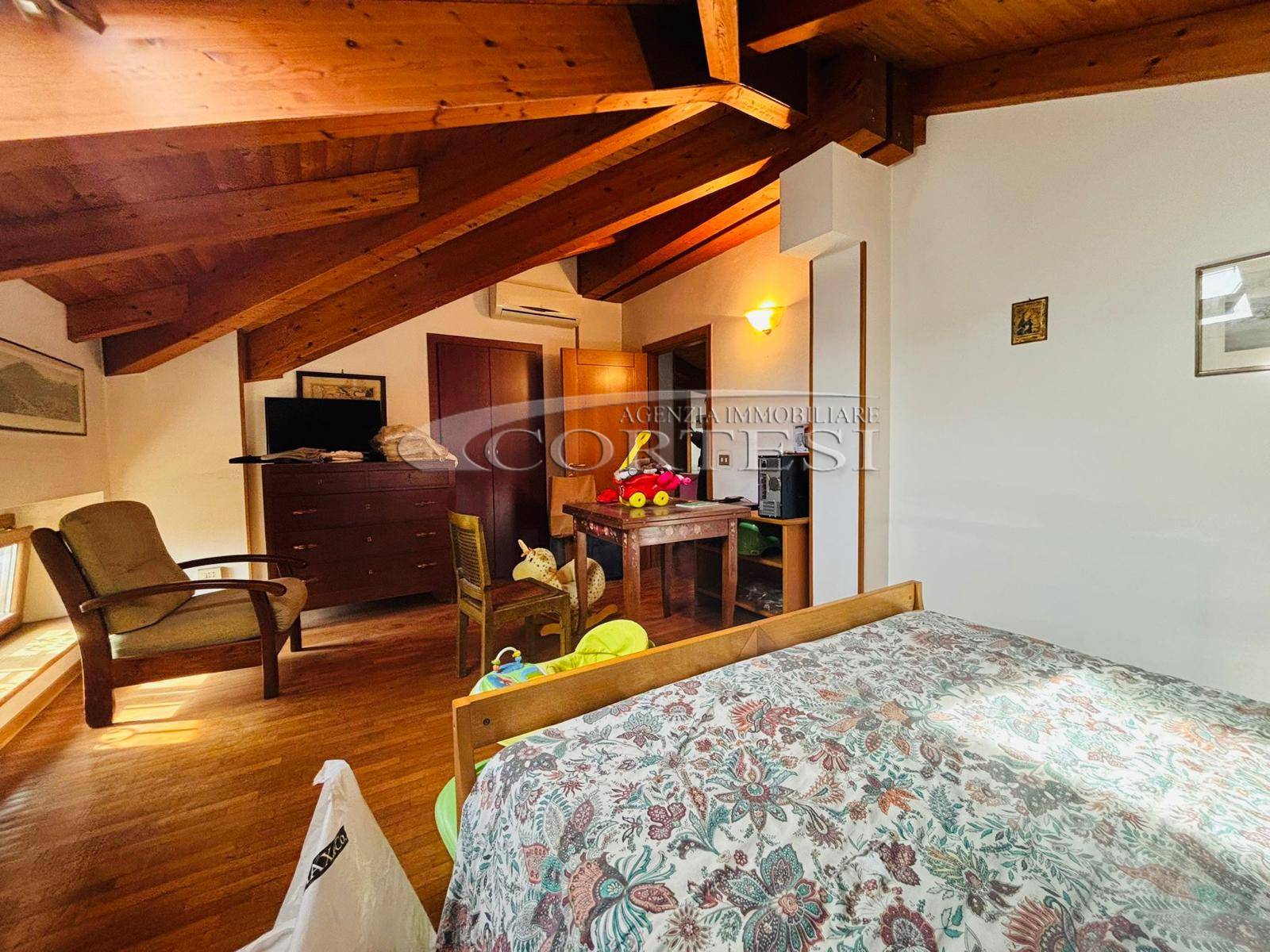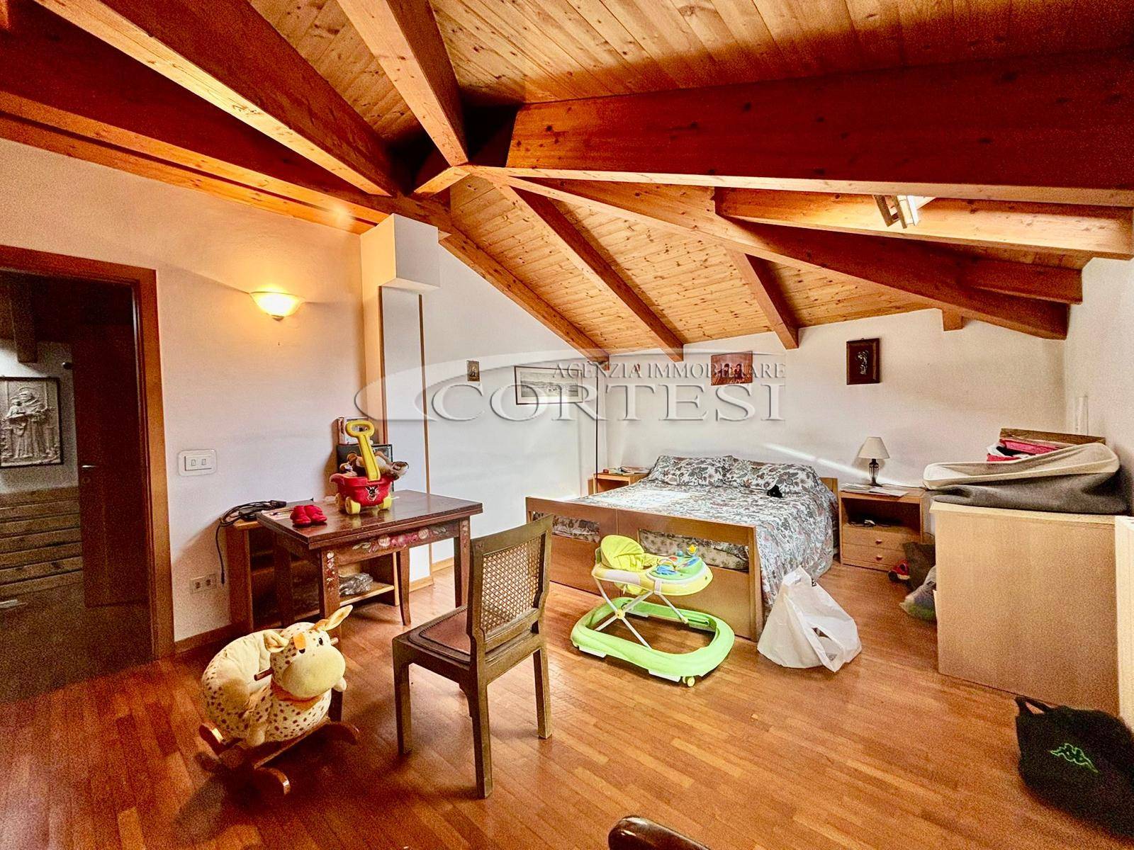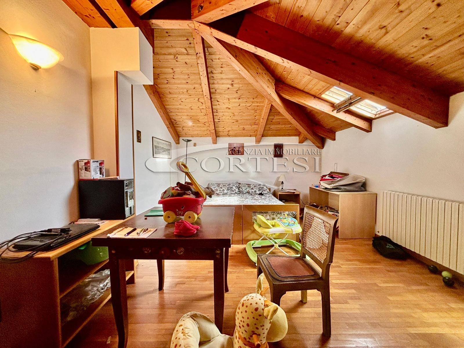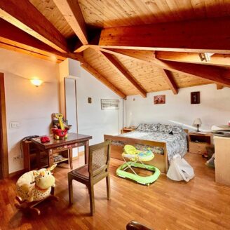 Proseguendo si accede alla mansarda abitabile, caratterizzata da ottime altezze e spazi versatili: qui trovano posto tre ulteriori stanze che possono essere utilizzate come camere, studio o area hobby e un ulteriore bagno.