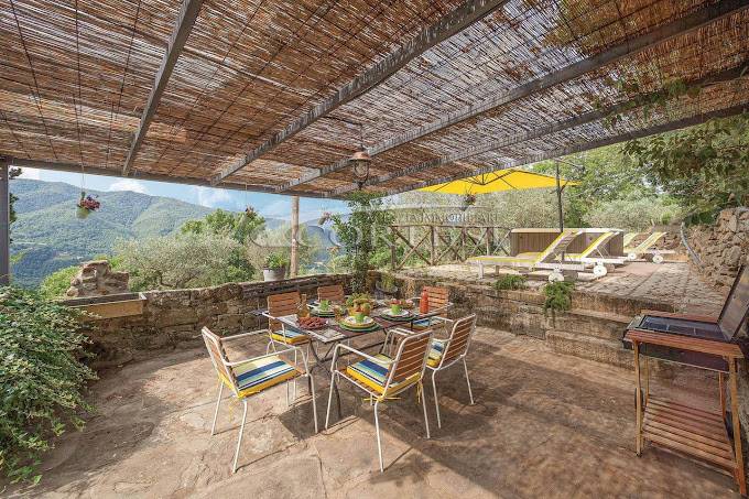 Villa singola in pietra, situata in posizione panoramica e immersa nella tranquillità della campagna, finemente ristrutturata con materiali di pregio. Al piano terra troviamo una cucina spaziosa e un soggiorno con stufa in ghisa; al piano superiore tre camere matrimoniali e un ampio bagno. Completa la proprietà una mansarda da completare, ampi fondi, porticato con giardino e una Jacuzzi esterna. Il terreno circostante di circa 3 ettari comprende 100 ulivi secolari e un annesso da ristrutturare.