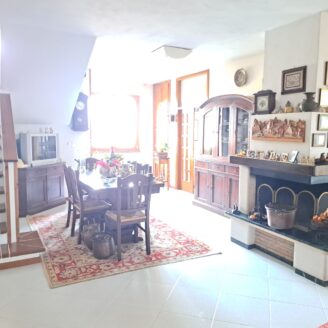 Piano Terra: ampio soggiorno con camino, cucina abitabile con camino, due camere matrimoniali, una camera singola e bagno.