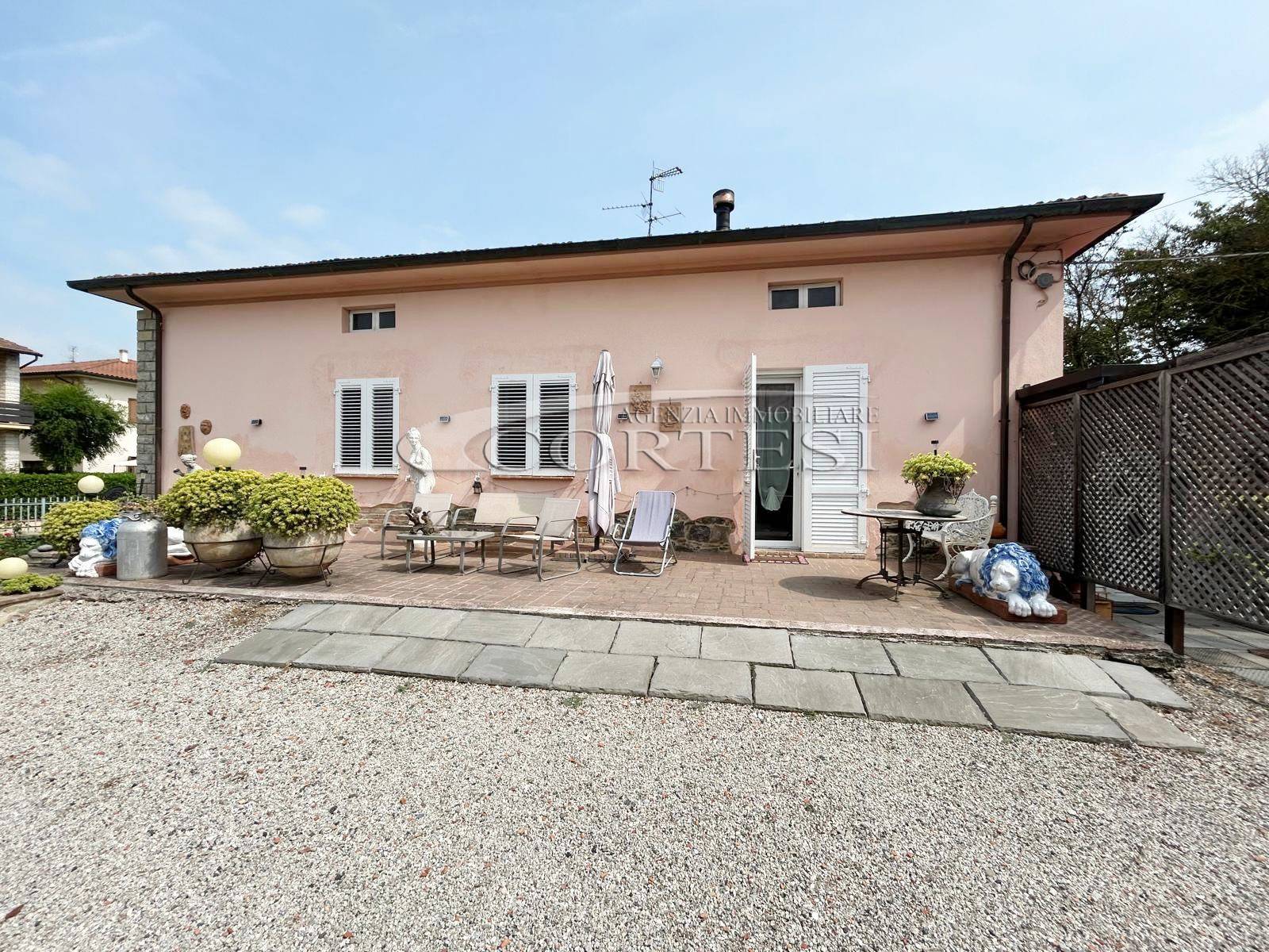 Villa singola libera su quattro lati, completamente ristrutturata, di circa 120 mq, disposta tutta su un unico livello con ingresso indipendente a piano terra. Composta da ampio soggiorno con camino, due camere matrimoniali, due bagni, studio, lavanderia, oltre a giardino privato di circa 600 mq con due annessi e garage.