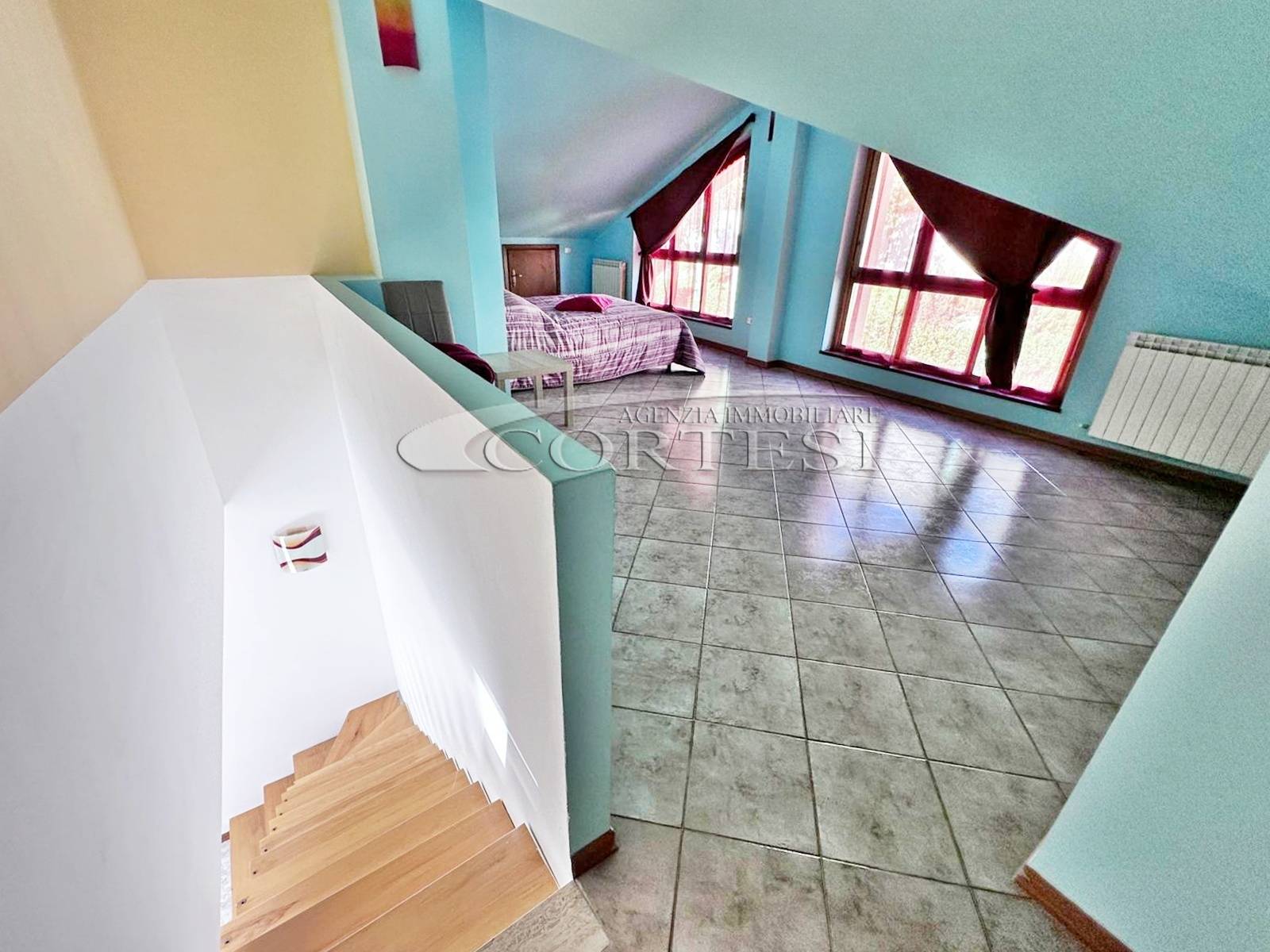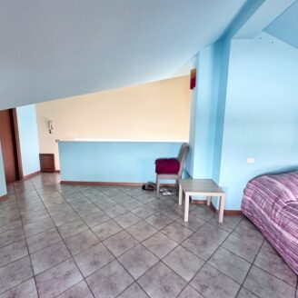 Salendo al Piano Primo, mansardato ma ben sfruttabile, troviamo una spaziosa camera matrimoniale con utili ripostigli sottotetto ed un secondo bagno finestrato.
